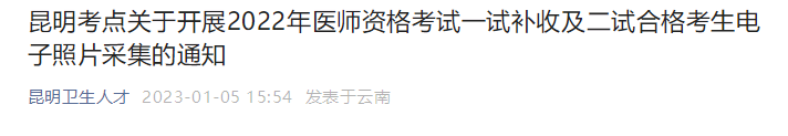 昆明考點關(guān)于開展2022年醫(yī)師資格考試一試補收及二試合格考生電子照片采集的通知