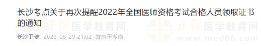 - · 湖南長沙考點再次提醒2022年全國醫(yī)師資格考試合格人員盡快領取證書