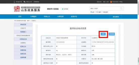 以醫(yī)師執(zhí)業(yè)地點(diǎn)變更為例,山東政務(wù)服務(wù)網(wǎng)上傳流程如下(醫(yī)護(hù)其他業(yè)務(wù)操作流程相同):
