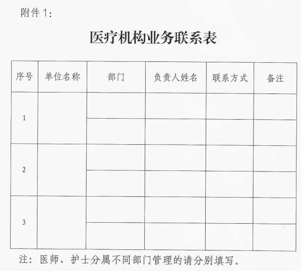 自本通知印發(fā)之日起,我市市屬醫(yī)療機構(gòu)醫(yī)師、護士注冊全面實施全程網(wǎng)辦,非必要不再線下辦理。確因特殊需求需要線下辦理的事項,可通過“預(yù)約制”辦理相關(guān)業(yè)務(wù),由申請人及所屬醫(yī)療機構(gòu)相關(guān)部門通過預(yù)約電話進行預(yù)約,我局安排專人進行對接。請各市屬醫(yī)療機構(gòu)于2023年1月31日前填報醫(yī)療機構(gòu)業(yè)務(wù)聯(lián)系表(附件1),將相關(guān)負責(zé)部門及聯(lián)系方式報送至我局聯(lián)系人郵箱。