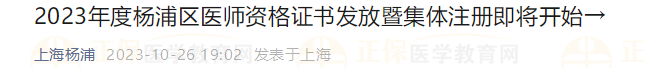 2023年上海楊浦區(qū)醫(yī)師資格證書發(fā)放暨集體注冊即將開始→