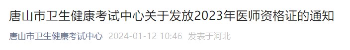 發(fā)證啦!河北唐山2023醫(yī)師資格考試證書(含二試)開始發(fā)放!