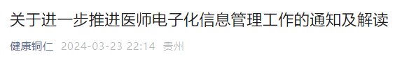 貴州平壩關(guān)于進(jìn)一步推進(jìn)醫(yī)師電子化信息管理工作的通知及解讀