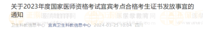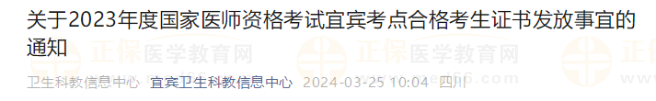 四川宜賓考點(diǎn)2023年度醫(yī)師資格考試合格考生證書(shū)發(fā)放事宜的通知