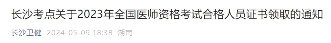 長沙考點(diǎn)關(guān)于2023年全國醫(yī)師資格考試合格人員證書領(lǐng)取的通知