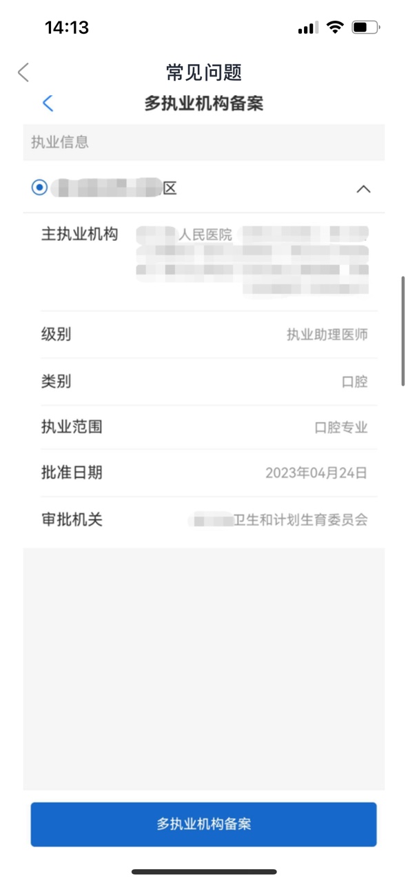 3)如當(dāng)前主執(zhí)業(yè)機(jī)構(gòu)有多個(gè)執(zhí)業(yè)范圍,申請(qǐng)多機(jī)構(gòu)備案時(shí)需在主執(zhí)業(yè)機(jī)構(gòu)的執(zhí)業(yè)范圍中進(jìn)行選擇。
