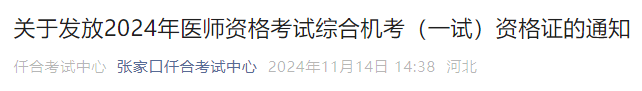 河北張家口2024年醫(yī)師資格考試(一試)證書即將郵寄發(fā)放!