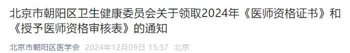 速領(lǐng)!北京朝陽區(qū)2024年醫(yī)師資格證書發(fā)放中,12月31日截止!
