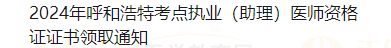 內(nèi)蒙古呼和浩特考點2024年執(zhí)業(yè)(助理)醫(yī)師資格證證書領(lǐng)取通知