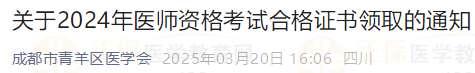 四川成都市青羊區(qū)2024年醫(yī)師資格考試合格證書領(lǐng)取的通知
