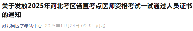- · 河北唐山2025年醫(yī)師資格(一試)資格證書11月25日起發(fā)放!