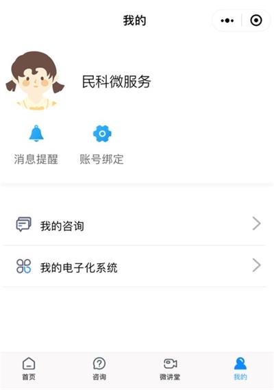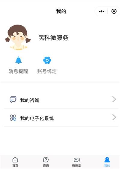 1、在“民科微服務(wù)”小程序里,點擊【我的】--【賬號綁定】