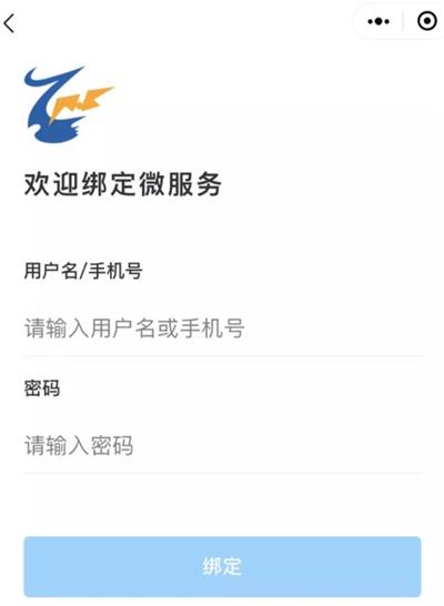 3、進入“歡迎綁定微服務(wù)”界面,輸入您在醫(yī)師或護士電子化注冊系統(tǒng)中的【用戶名/手機號】和【密碼】后,點擊【綁定】。