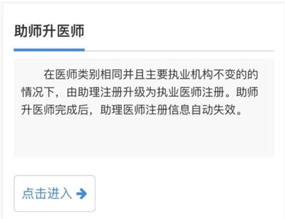 情況一:助師升為執(zhí)業(yè)醫(yī)師,若執(zhí)業(yè)類別、主執(zhí)業(yè)機構和執(zhí)業(yè)范圍都不變,請參考以下操作步驟