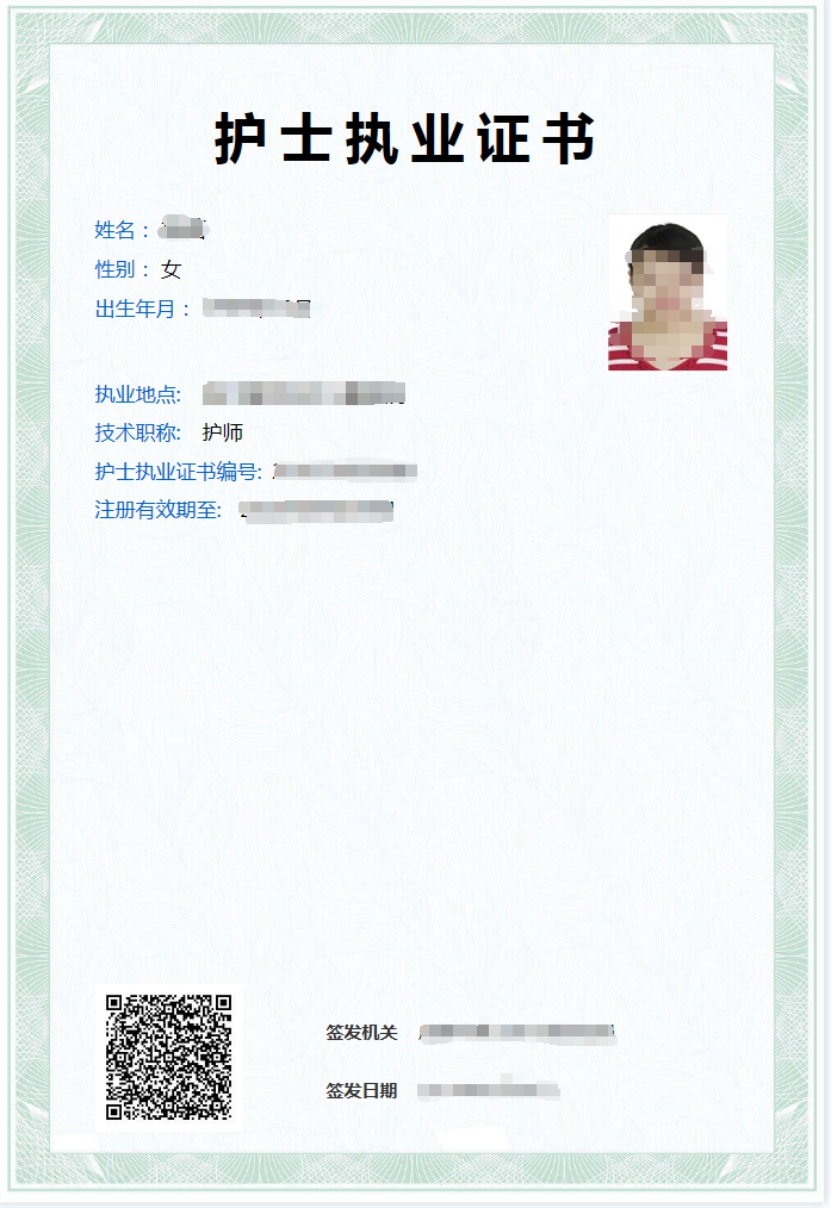護(hù)士電子證照樣式