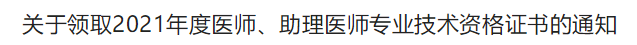 青島考點(diǎn)關(guān)于領(lǐng)取2021年度醫(yī)師、助理醫(yī)師專業(yè)技術(shù)資格證書的通知
