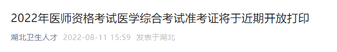 湖北省2022年醫(yī)師資格考試醫(yī)學(xué)綜合考試準(zhǔn)考證將于近期開放打印