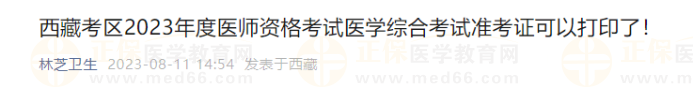 西藏考區(qū)林芝考點(diǎn)2023年度醫(yī)師資格考試醫(yī)學(xué)綜合考試準(zhǔn)考證可以打印了!