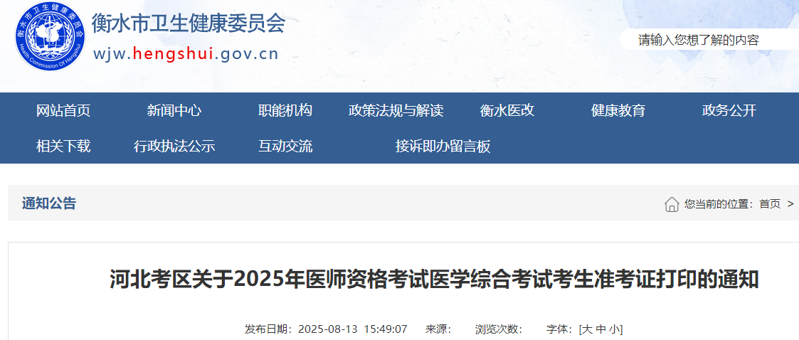 - · 河北衡水2025年醫(yī)師資格綜合筆試準(zhǔn)考證8月15日起打??!