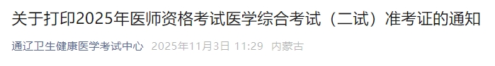 內(nèi)蒙古通遼2025年醫(yī)師資格“一年兩試”準(zhǔn)考證打印開始!