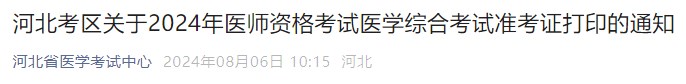 河北省官方發(fā)布通知:2024年醫(yī)師資格綜合筆試準(zhǔn)考證打印8月7日10:00開始!請(qǐng)相關(guān)考生及時(shí)查看通知要求,做好筆試應(yīng)試準(zhǔn)備!