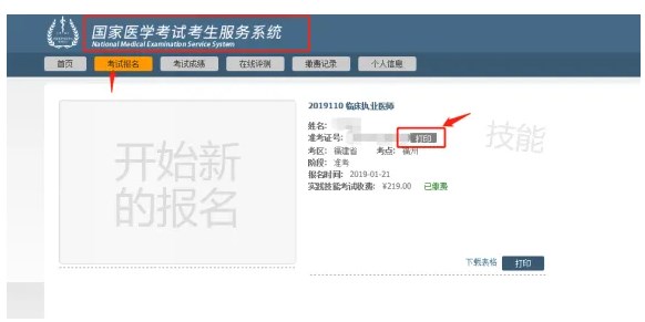 二、河北考區(qū)將于8月7日10:00開放準(zhǔn)考證打印功能,請(qǐng)考生及時(shí)登陸國(guó)家醫(yī)學(xué)考試網(wǎng)(www.nmec.org.cn),進(jìn)入“國(guó)家醫(yī)學(xué)考試考生服務(wù)系統(tǒng)——個(gè)人界面”點(diǎn)擊準(zhǔn)考證號(hào)后的“打印”按鈕,打印準(zhǔn)考證(如下圖)。