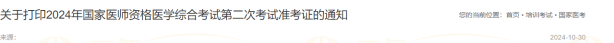 山東淄博考點2024年醫(yī)師資格醫(yī)學綜合“一年兩試”準考證打印通知