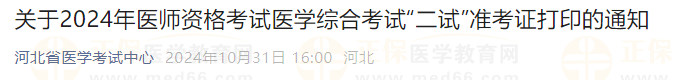 考生注意:河北石家莊2024醫(yī)師資格“一年兩試”準考證今日打?。?/h1>