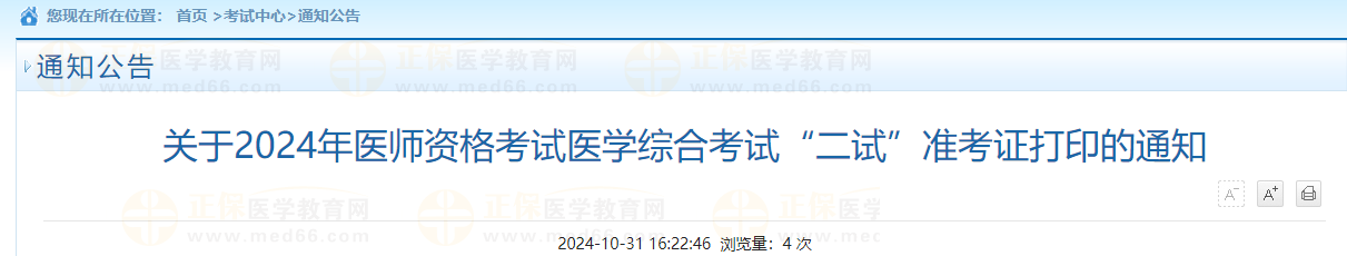 一、2024年醫(yī)師資格考試醫(yī)學綜合考試“二試”將于11月9-10日進行。