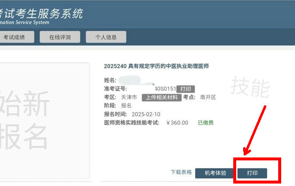 (天津市2025年醫(yī)師資格實踐技能準考證打印入口)