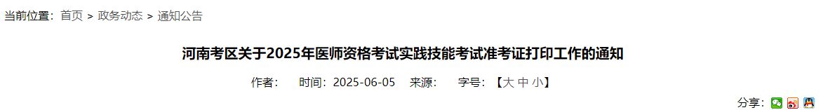 考生注意:河南省2025年醫(yī)師資格實(shí)踐技能準(zhǔn)考證6月9日起打印!