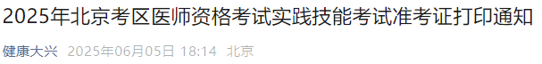 北京大興區(qū)2025年醫(yī)師資格實(shí)踐技能準(zhǔn)考證打印已開始!