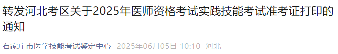 河北廊坊2025年醫(yī)師資格實踐技能考生速去打印準(zhǔn)考證!請相關(guān)考生及時查看官方通知,做好技能應(yīng)試準(zhǔn)備!