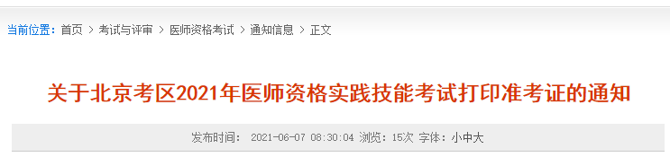 關(guān)于北京考區(qū)2021年醫(yī)師資格實(shí)踐技能考試打印準(zhǔn)考證的通知