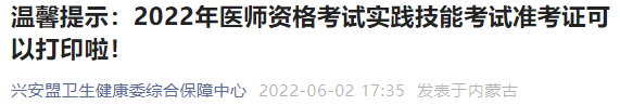 興安盟考點(diǎn)溫馨提示:2022年醫(yī)師資格考試實(shí)踐技能考試準(zhǔn)考證可以打印啦!