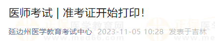醫(yī)師考試 | 延邊州考點(diǎn)2023年醫(yī)師二試準(zhǔn)考證開始打?。?/h1>