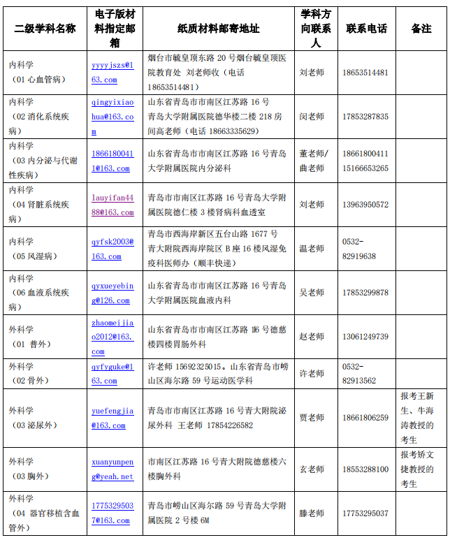 臨床醫(yī)學(xué)系辦公室聯(lián)系人:王老師,聯(lián)系電話:0532-82912801,各二級(jí)學(xué)科方向聯(lián)系方式如下: