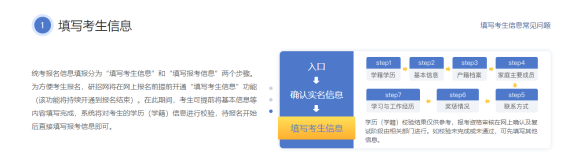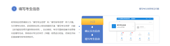 統(tǒng)考報(bào)名信息填報(bào)分為“填寫考生信息”和“填寫報(bào)考信息”兩個(gè)步驟。
