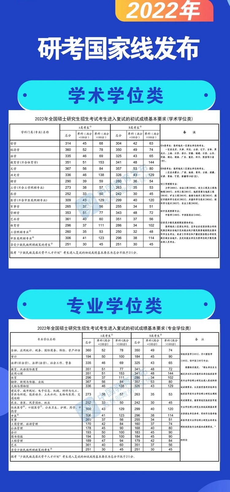 同日,教育部發(fā)布了《2022年全國碩士研究生招生考試考生進入復(fù)試的初試成績基本要求》(國家分數(shù)線)。各招生單位將根據(jù)《2022年全國碩士研究生招生工作管理規(guī)定》,在國家分數(shù)線的基礎(chǔ)上,自主確定并公布本單位各專業(yè)考生進入復(fù)試的要求。