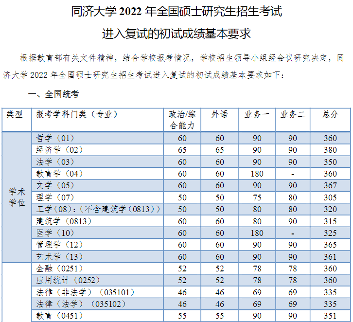 2022年考研的國(guó)家線已經(jīng)公布了!34所自主劃線的院校也已經(jīng)陸續(xù)公布分?jǐn)?shù)!34自主劃線院校中的同濟(jì)大學(xué)已經(jīng)公布了2022年考研的復(fù)試分?jǐn)?shù)線,為了幫助報(bào)考了同濟(jì)大學(xué)的考生了解,醫(yī)學(xué)教育網(wǎng)小編整理如下: