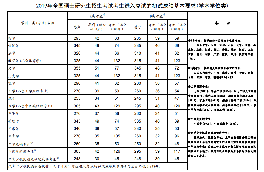 醫(yī)學教育網(wǎng)小編在國家教育部的官網(wǎng)上查閱到了“2019年全國碩士研究生招生考試考生進入復試的初試成績基本要求”,其中涉及到了復試分數(shù)線的內容。為幫助各位考生了解,醫(yī)學教育網(wǎng)小編整理通知內容如下: