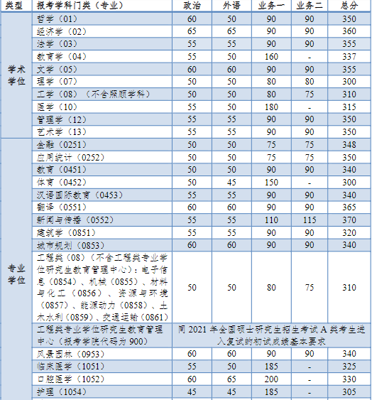 同濟大學2021年全國碩士研究生招生考試進入復試的初試成績基本要求如下: