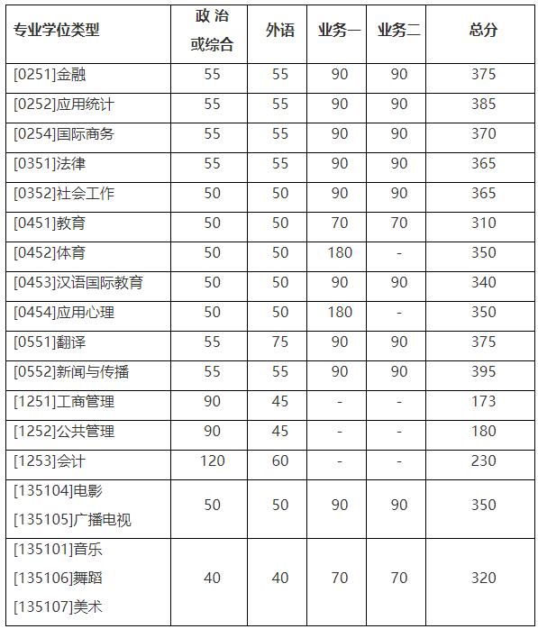 二、學校復試基本分數(shù)線(專業(yè)學位類)