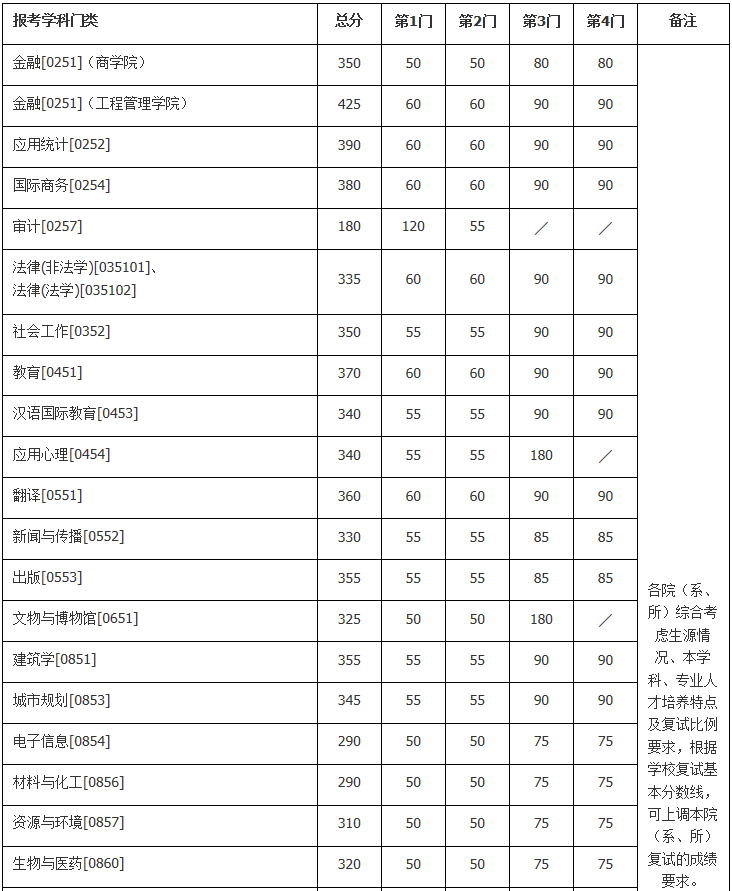 (6)招生院系可在學(xué)校公布的復(fù)試基本分?jǐn)?shù)線基礎(chǔ)上,結(jié)合生源及招生計(jì)劃自主確定復(fù)試分?jǐn)?shù)線,請(qǐng)考生關(guān)注各學(xué)院發(fā)布的復(fù)試方案。