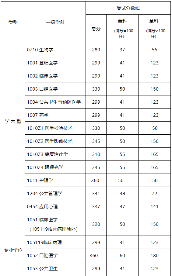 我校2021年碩士研究生招生一志愿考生(除“大學(xué)生士兵計劃”)進(jìn)入復(fù)試的初試成績要求見下表。