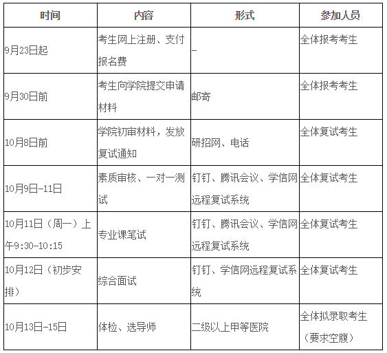 1.復(fù)試時(shí)間:10月9日—10月15日。
