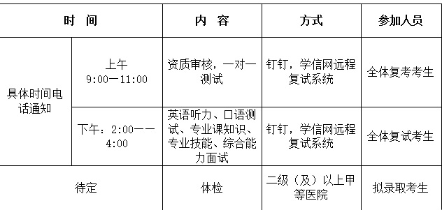 擬錄取考生須在當(dāng)?shù)囟?jí)醫(yī)院進(jìn)行體檢,并將體檢報(bào)告掃描件發(fā)至本院。如考生體格檢查不符合教育部有關(guān)文件要求,則不予錄取。入學(xué)后進(jìn)行復(fù)檢,復(fù)檢不合格將取消入學(xué)資格。