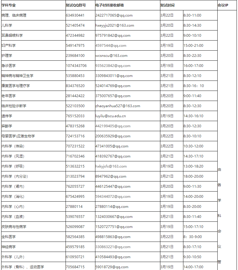 四川大學(xué)華西臨床醫(yī)學(xué)院發(fā)布2021年碩士研究生招生復(fù)試時(shí)間通知