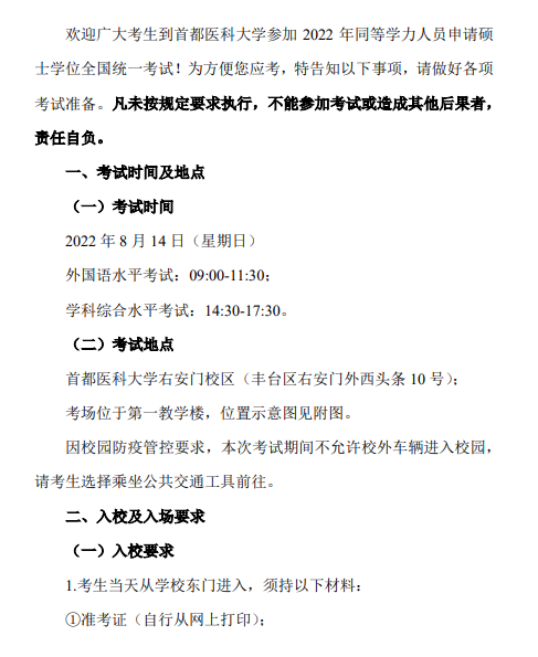 各位考研考友,請注意!2022年同等學(xué)力人員申請碩士學(xué)位全國統(tǒng)考首都醫(yī)科大學(xué)考點(diǎn)考生須知發(fā)布!為讓大家了解具體內(nèi)容,醫(yī)學(xué)教育網(wǎng)小編整理官方通知,分享如下: