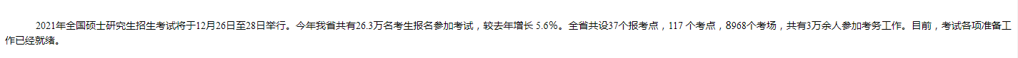 以上就是關(guān)于“江蘇省2021年有26萬考生參加碩士研究生考試”的全部內(nèi)容了,希望對大家關(guān)于考研的競爭有多大有所了解!后續(xù)關(guān)于分?jǐn)?shù)線、復(fù)試與調(diào)劑的公告,請繼續(xù)關(guān)注醫(yī)學(xué)教育網(wǎng)!